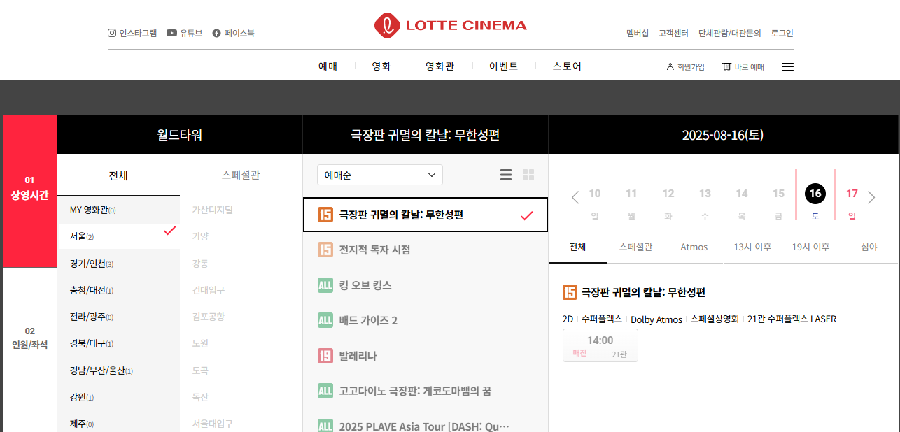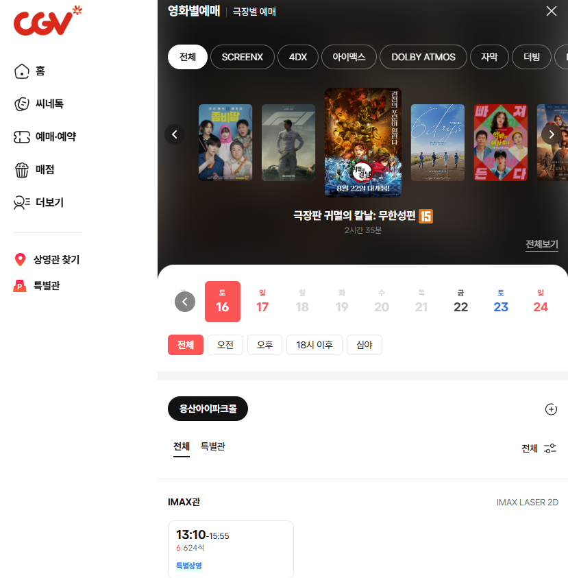 특히 CGV 용산 아이맥스(용아맥)나 메가박스 코엑스 MX관 등 인기 극장은 오픈과 동시에 좌석이 동나기도 합니다.
